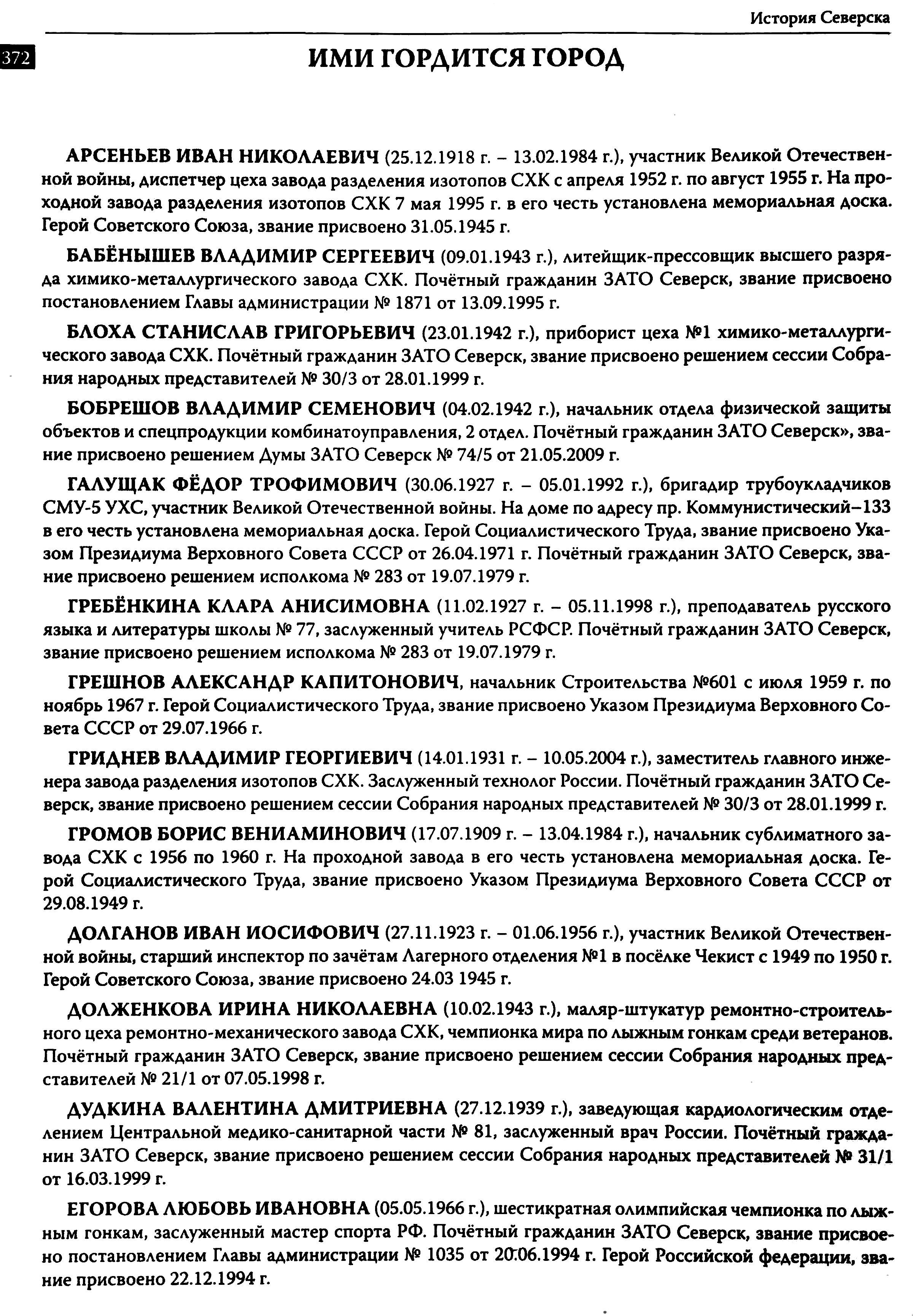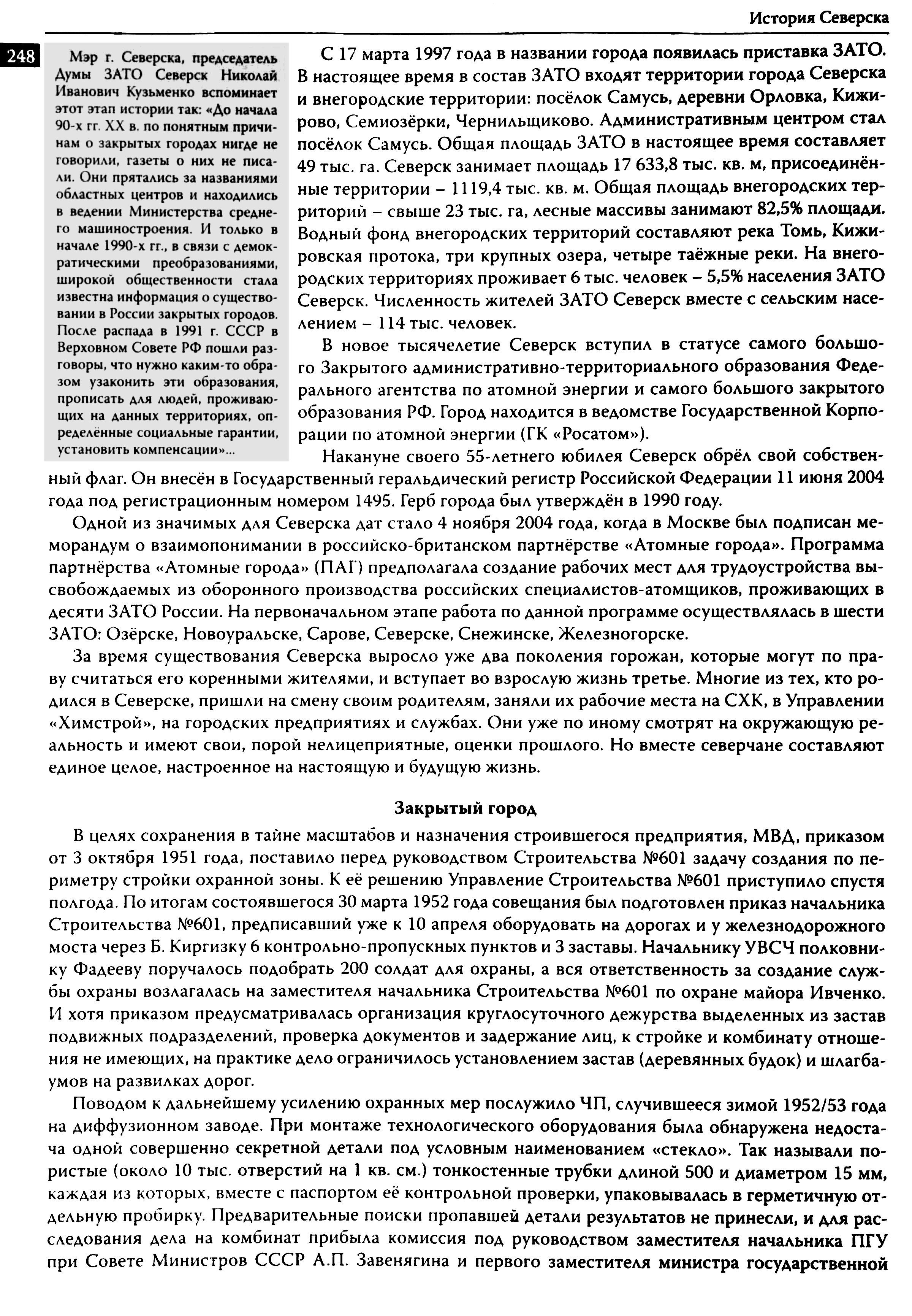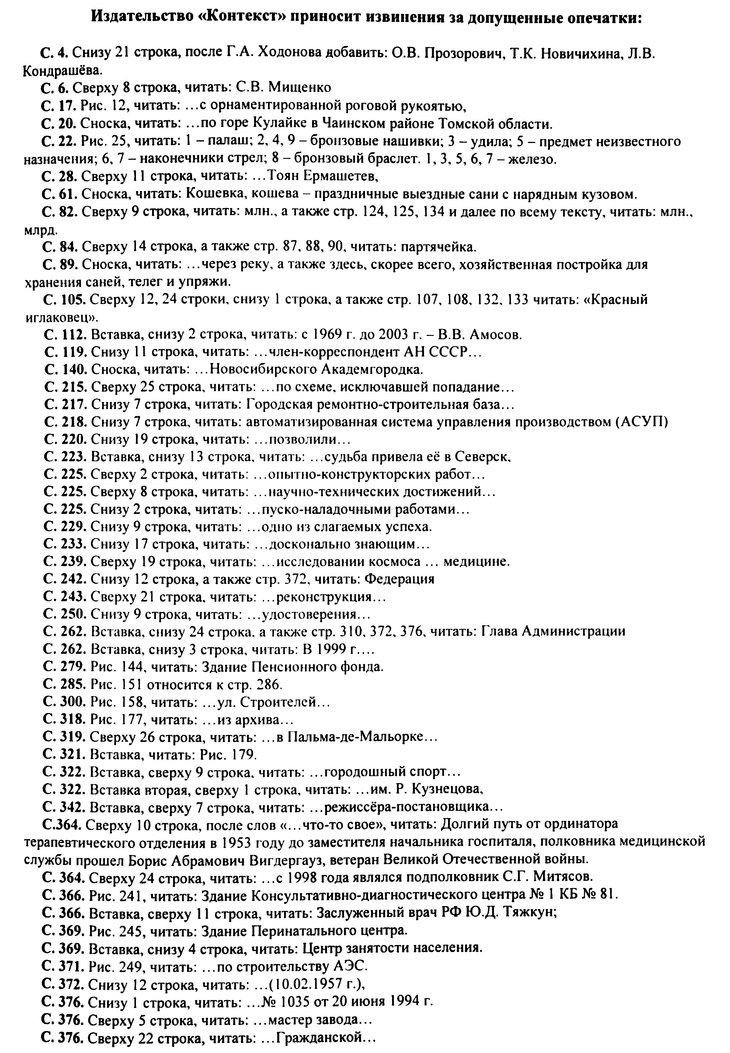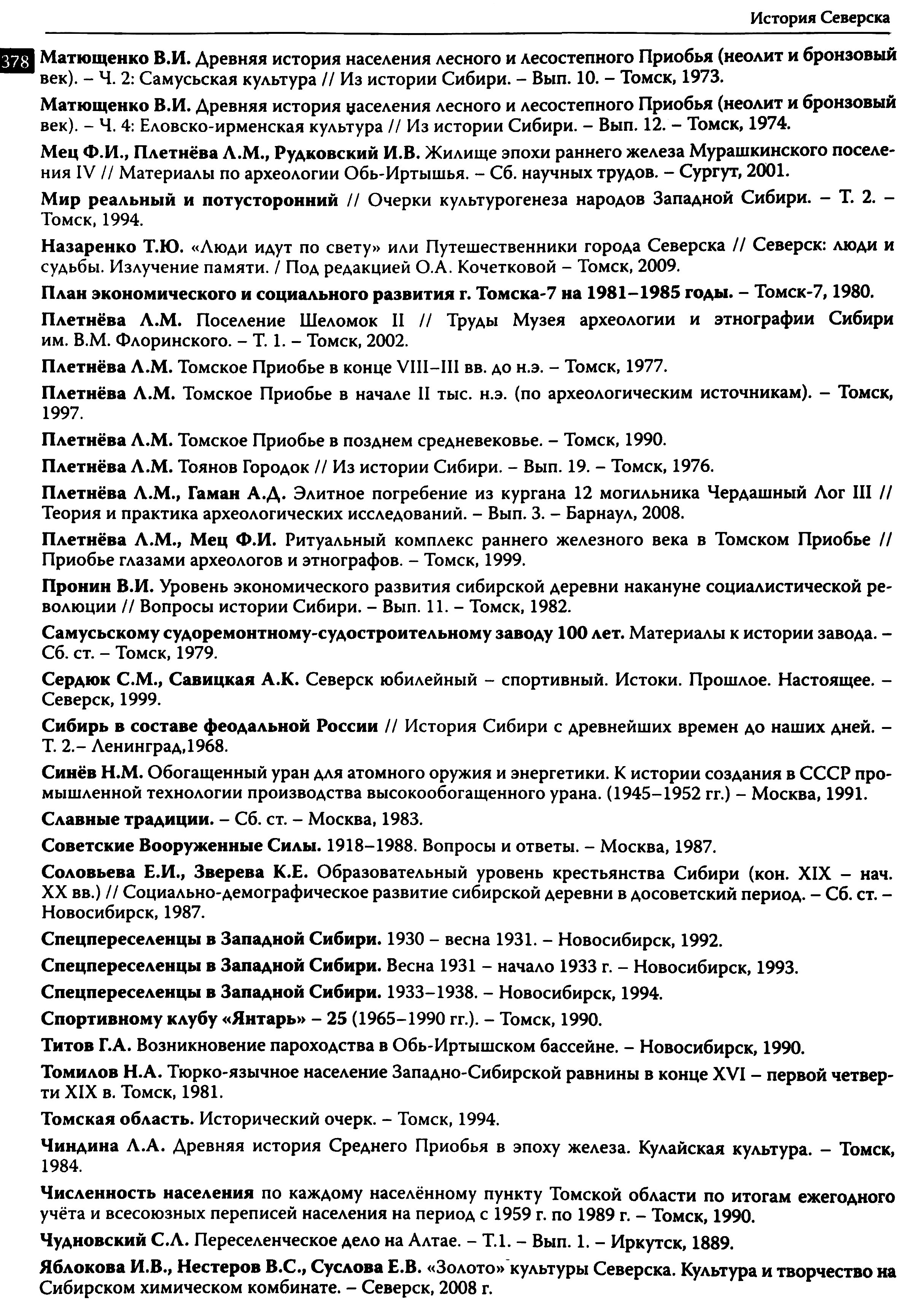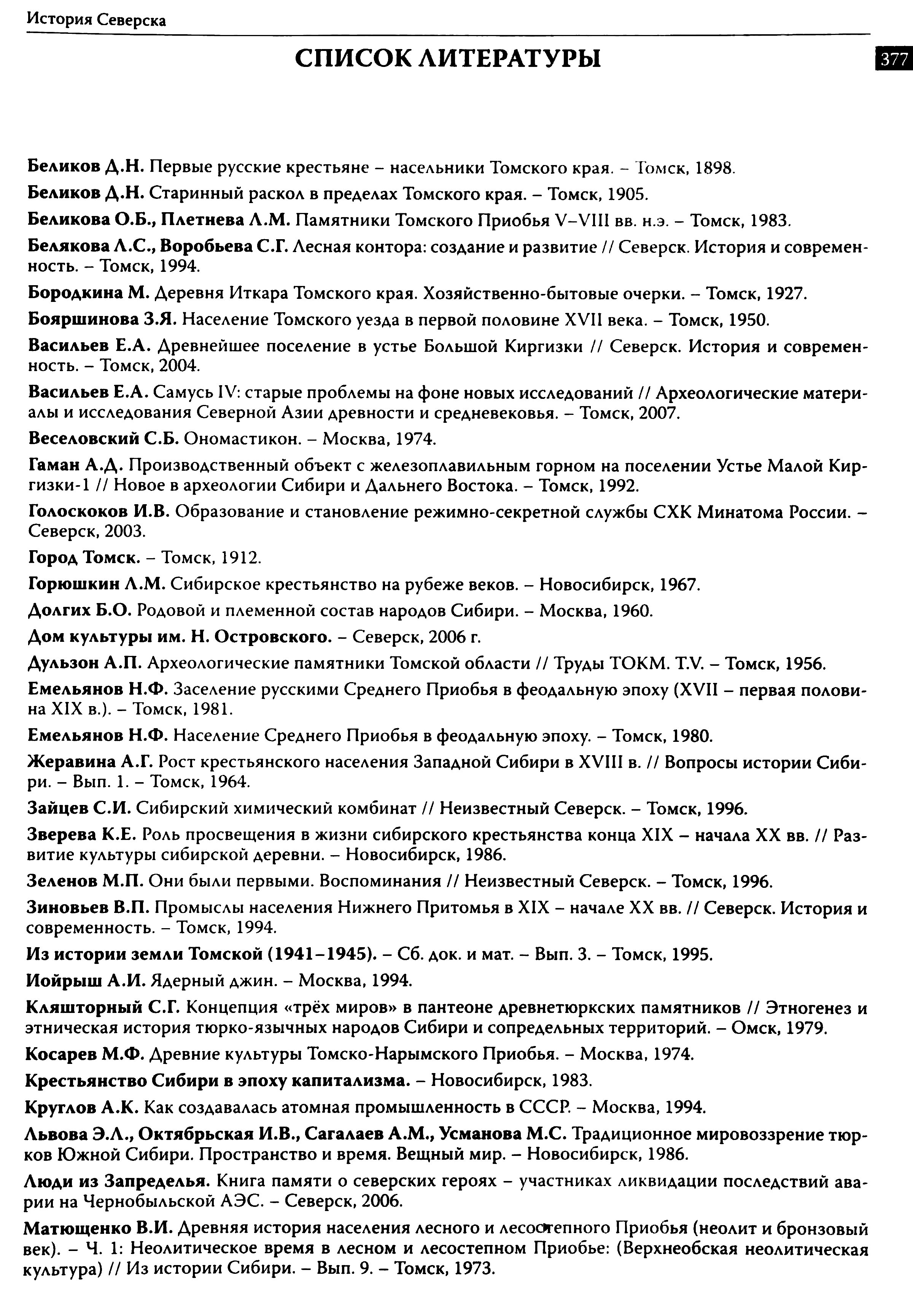 История Северска : очерки / Музей г. Северска ; Ред. коллегия : В. П. Зиновьев, Е. А. Хованскова, С. А. Березовская. — Северск : Музей г. Северска, 2009. — 380 с.,: ил., портр. — Библиогр.: с. 377–378.