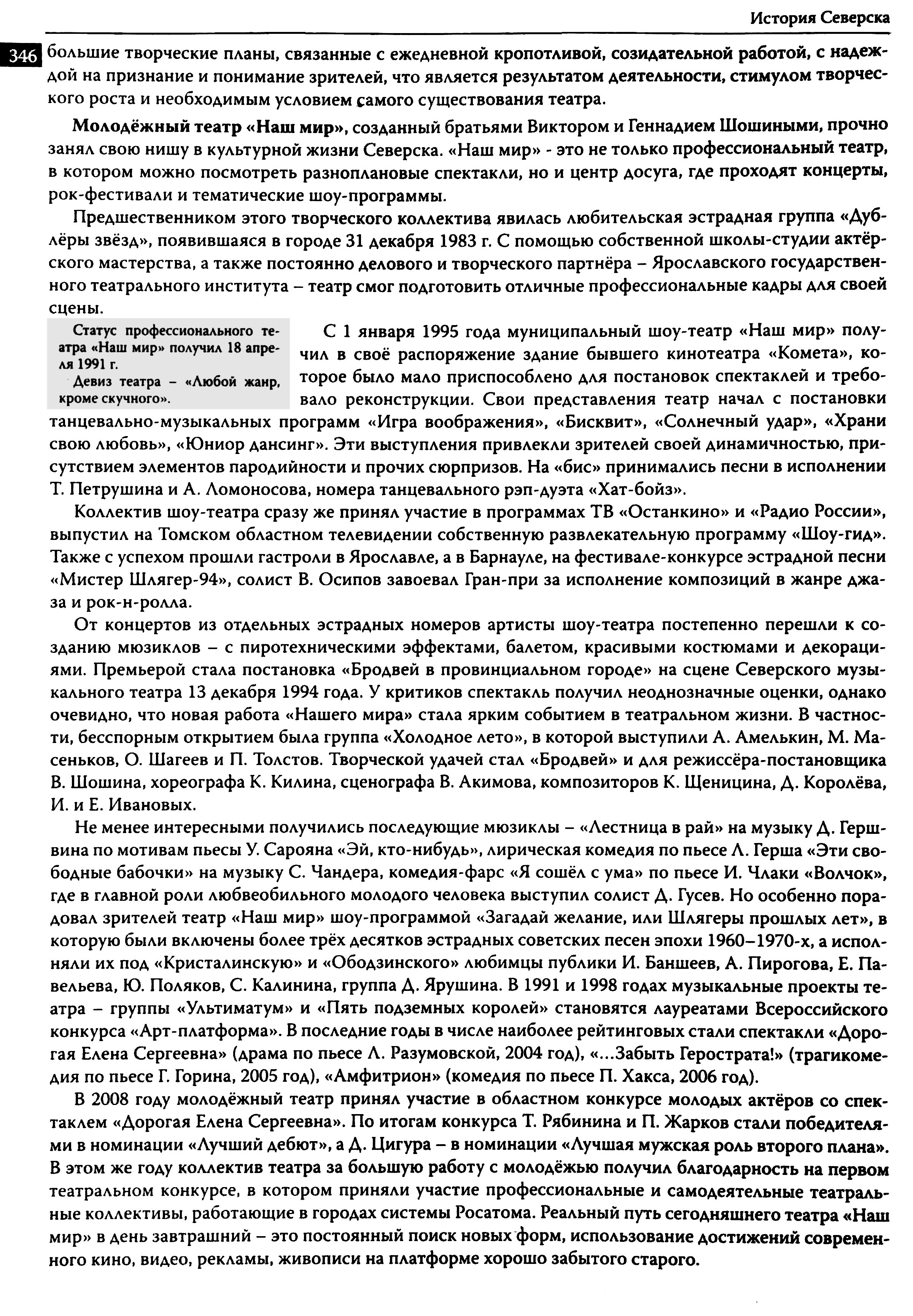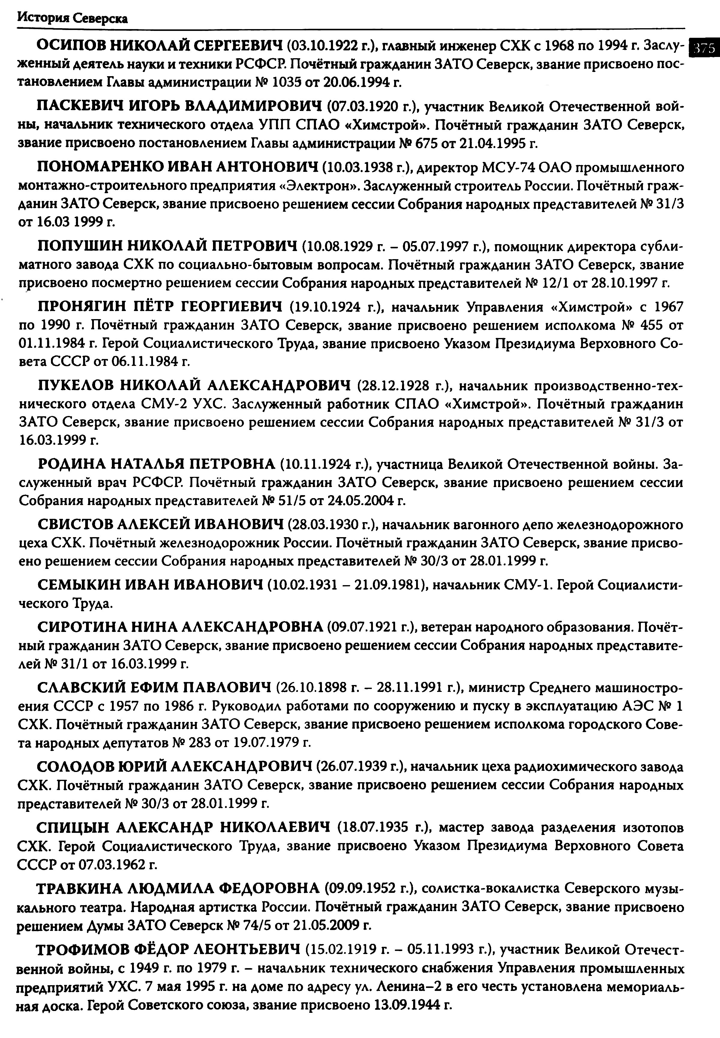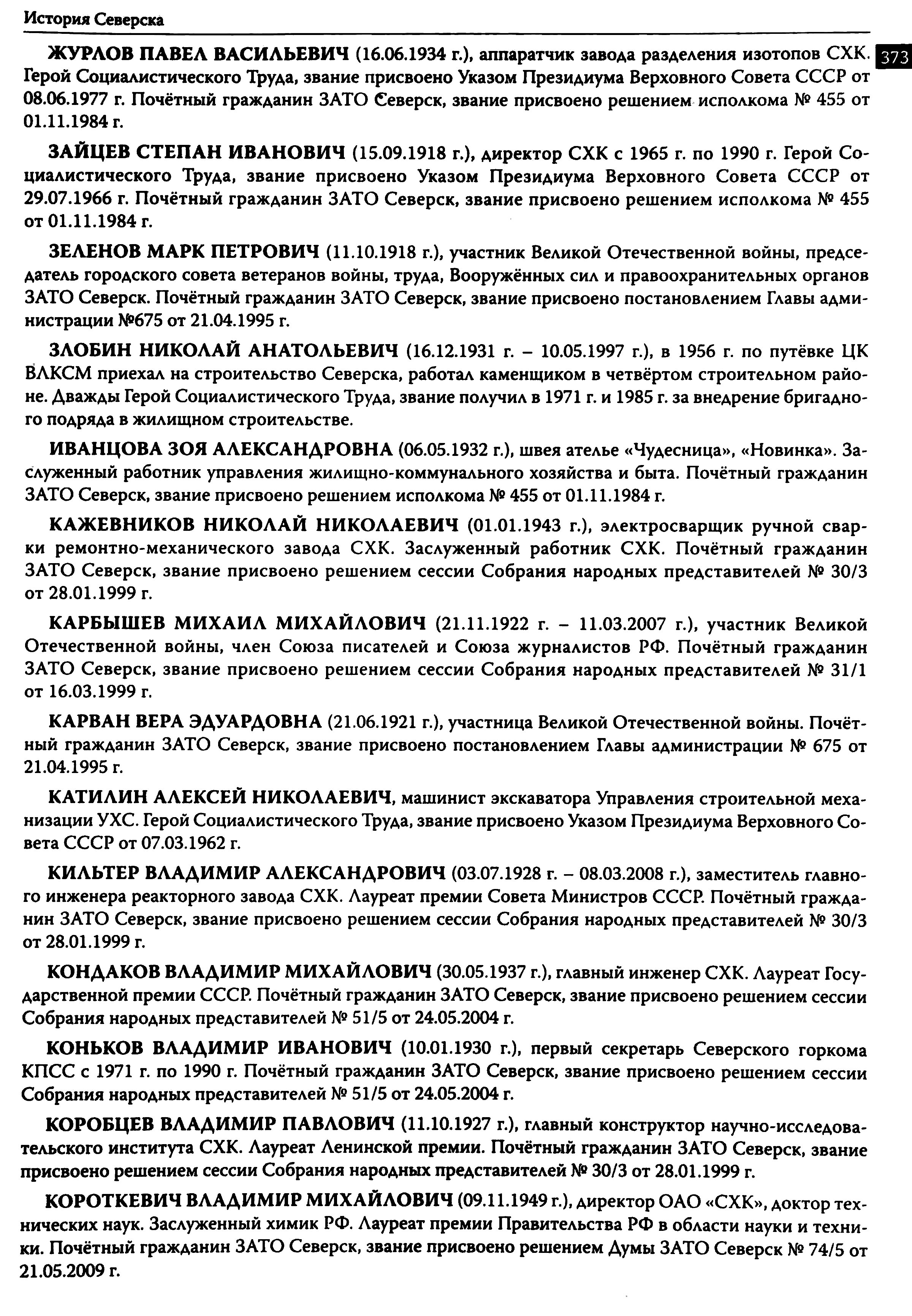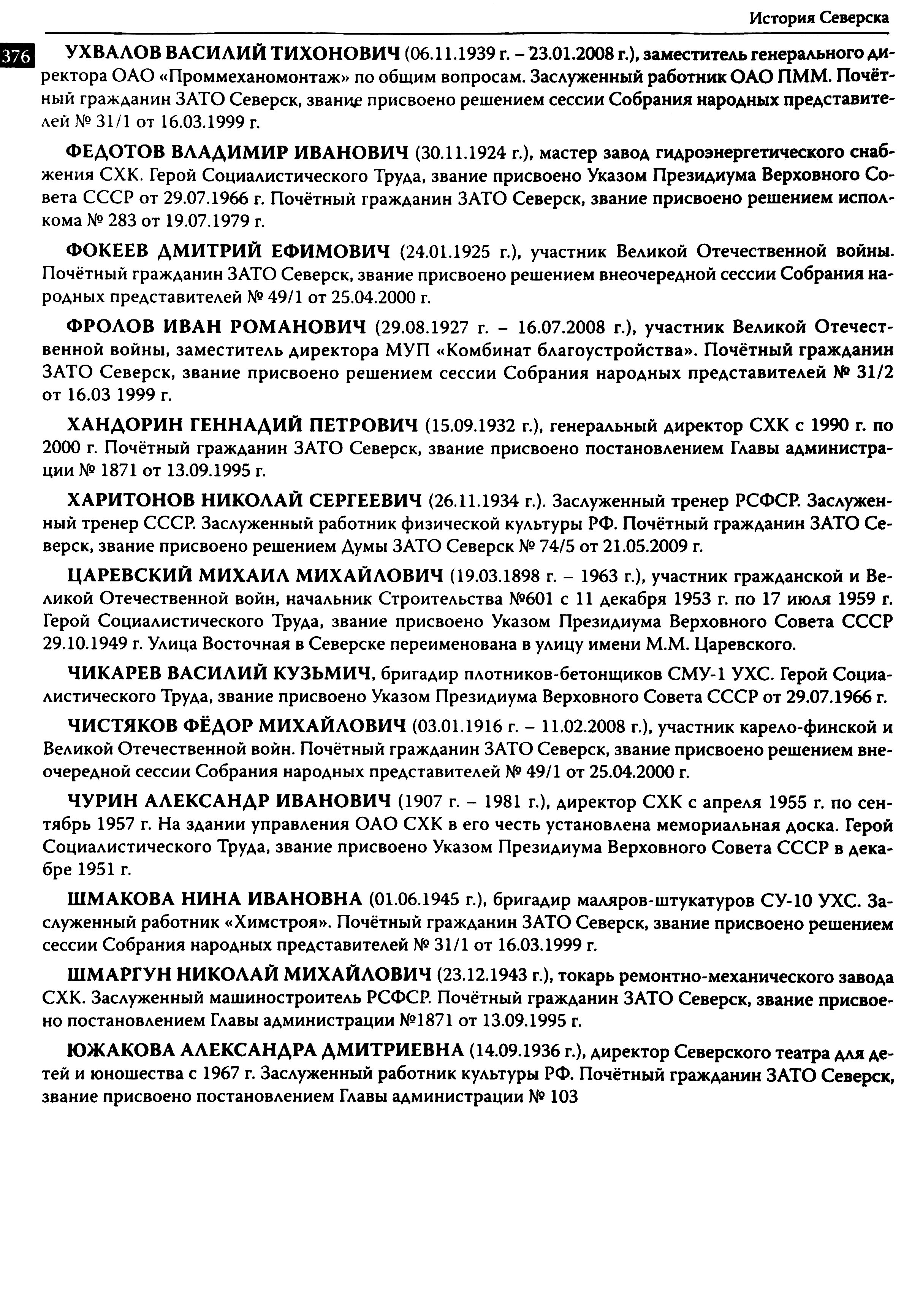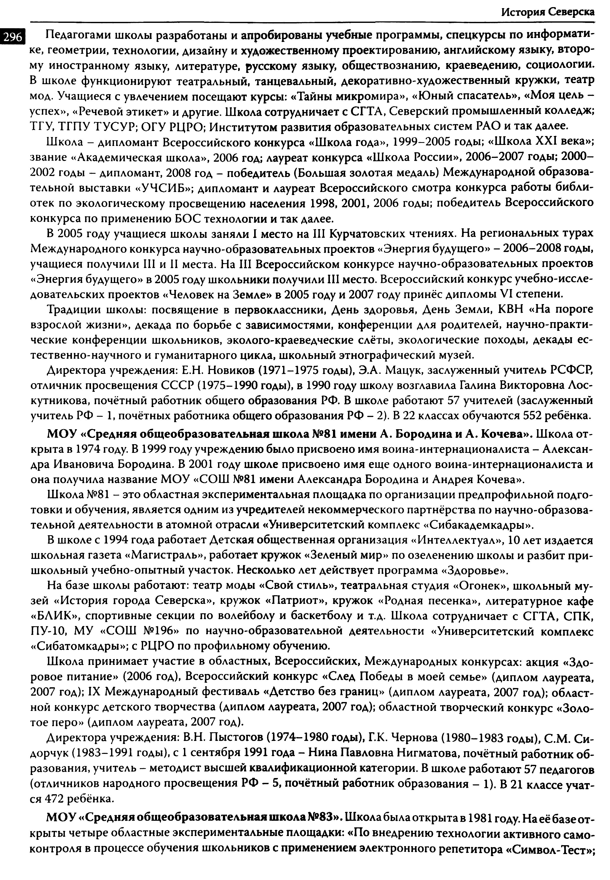 История Северска : очерки / Музей г. Северска ; Ред. коллегия : В. П. Зиновьев, Е. А. Хованскова, С. А. Березовская. — Северск : Музей г. Северска, 2009. — 380 с.,: ил., портр. — Библиогр.: с. 377–378.