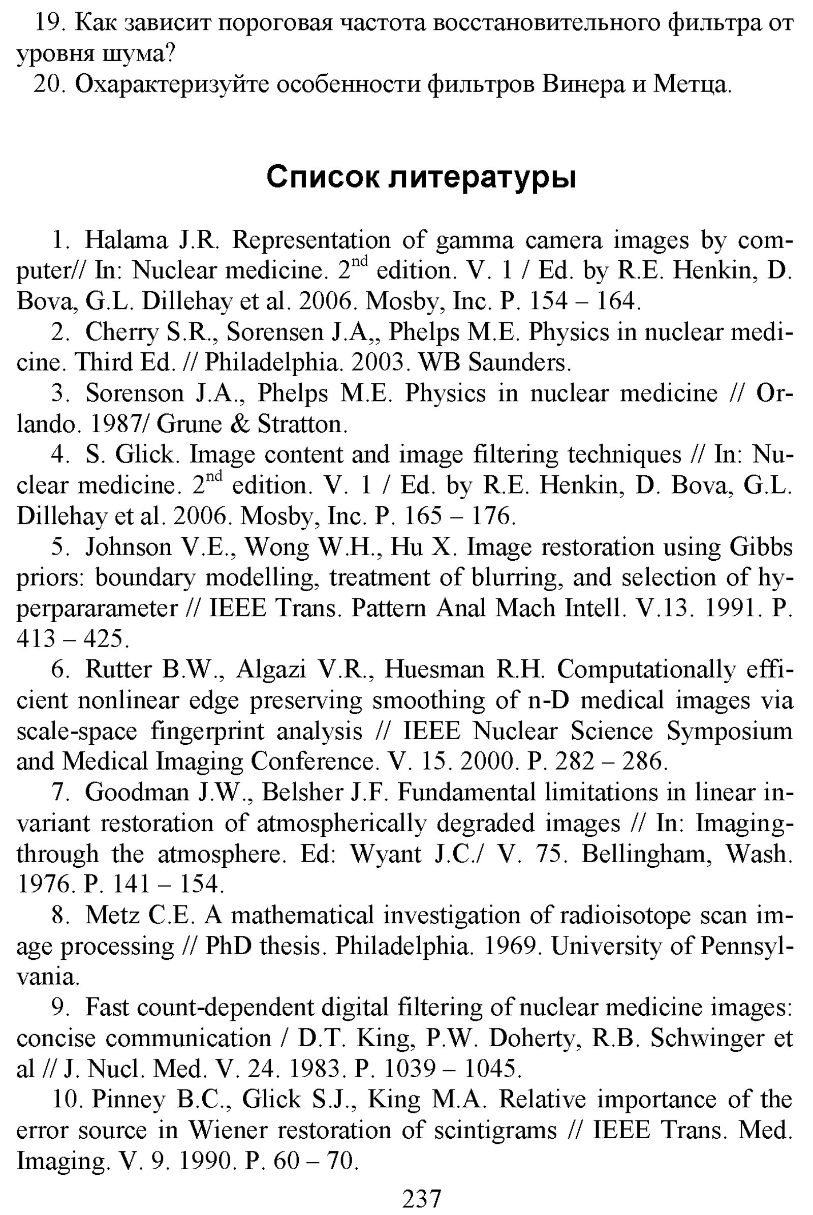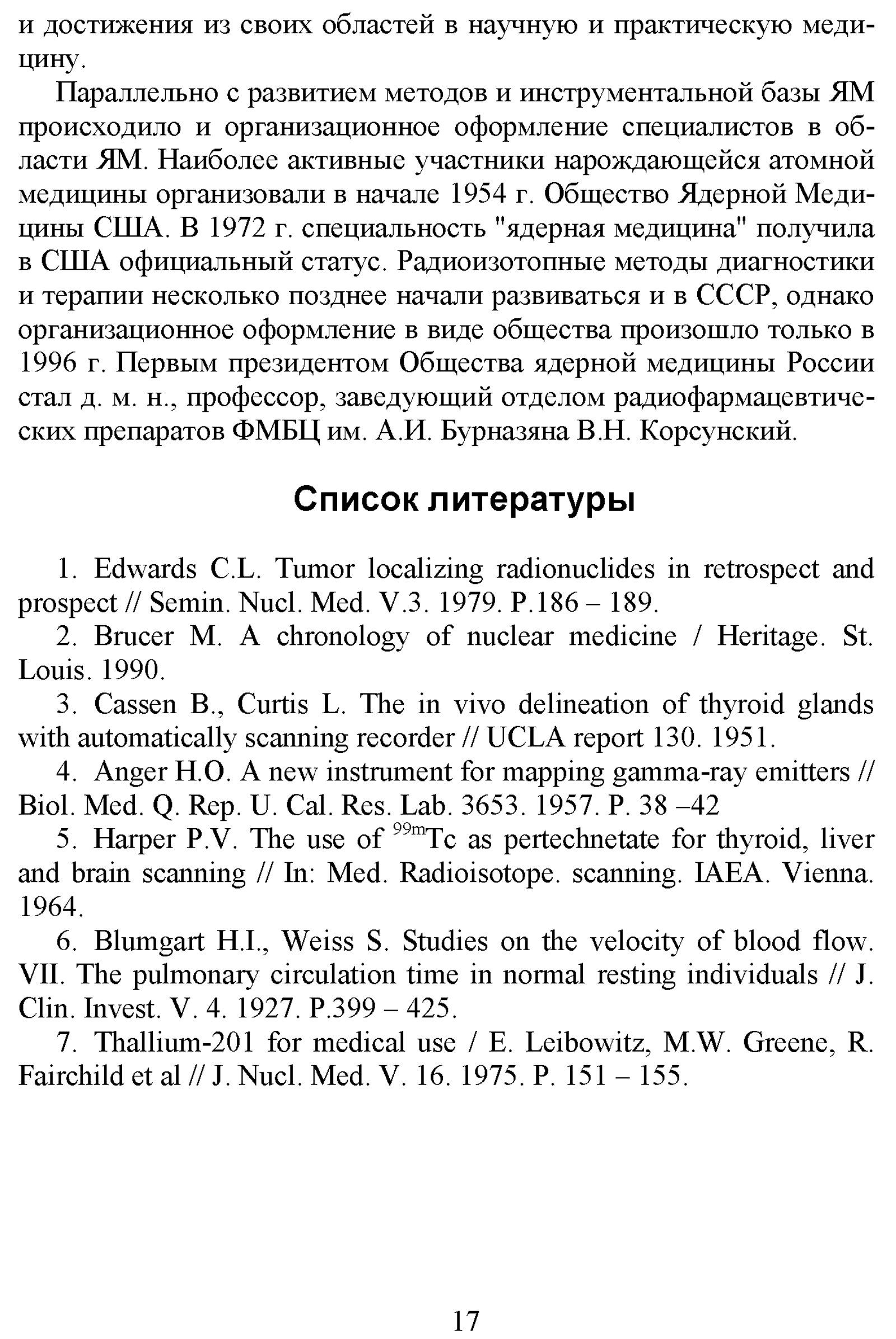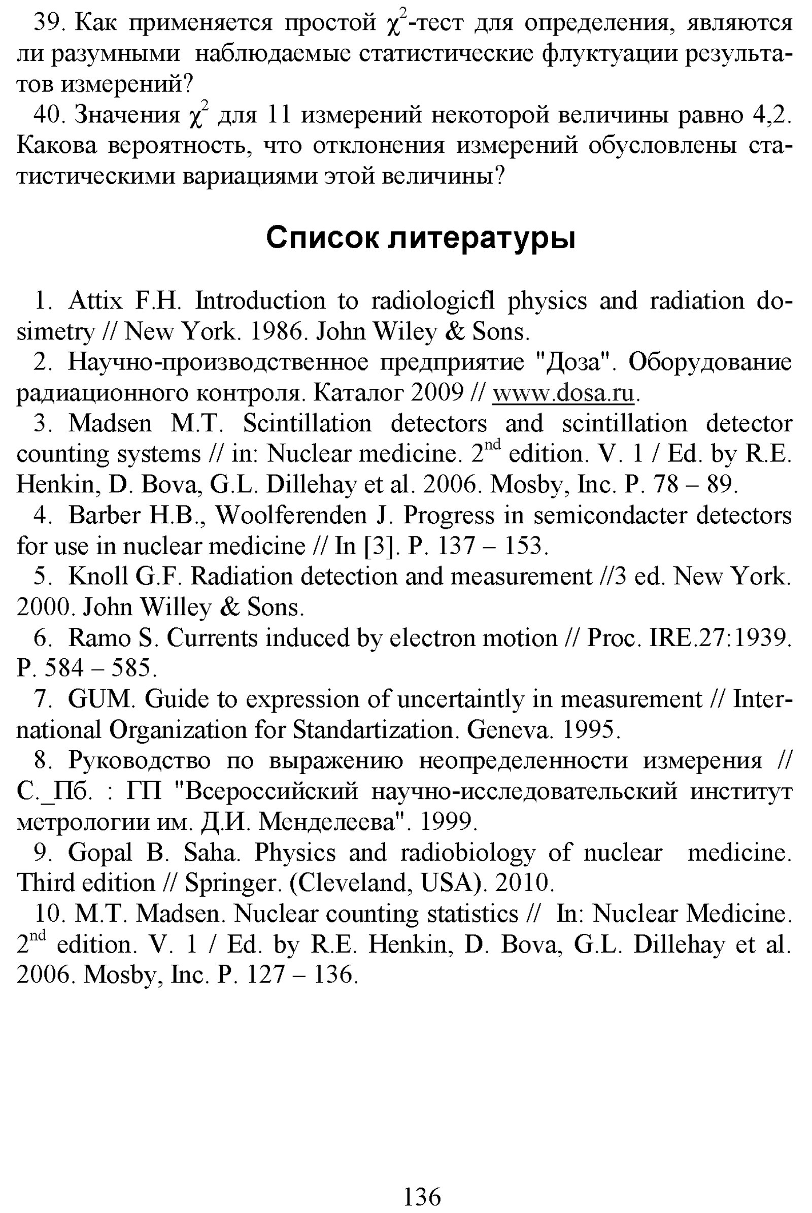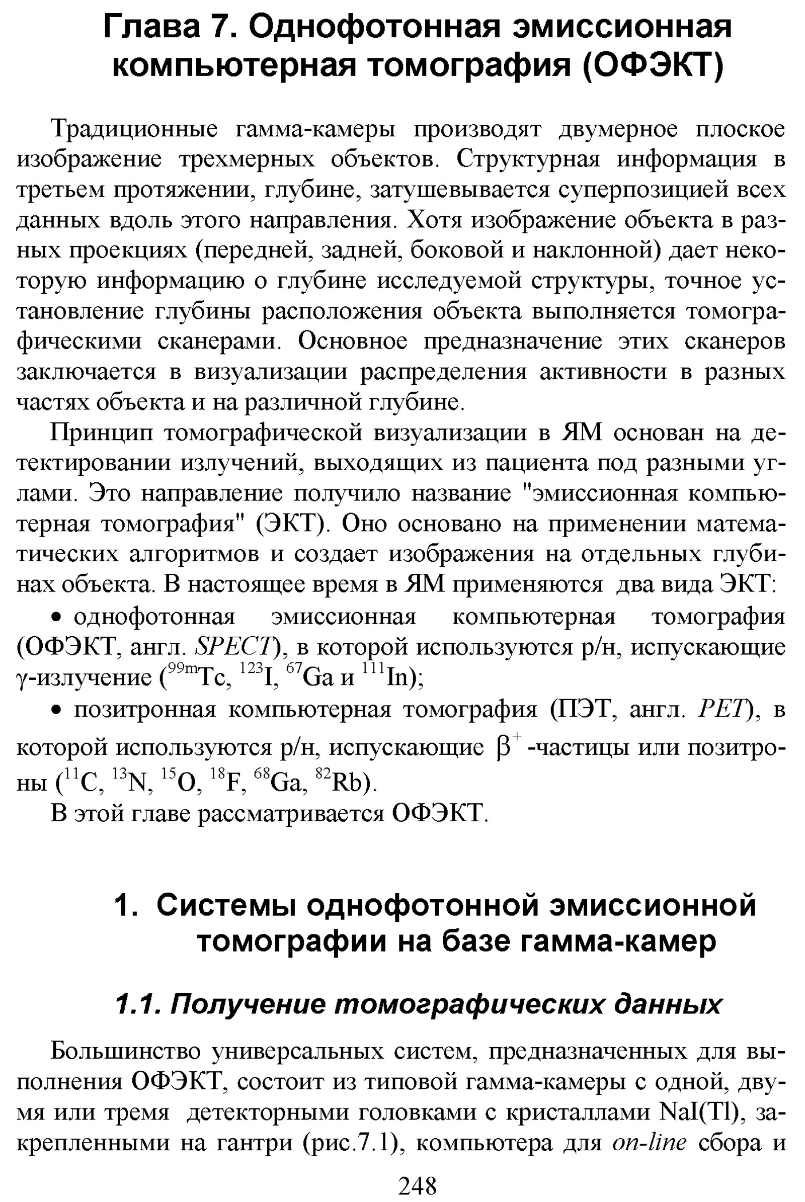 Климанов В. А. Физика ядерной медицины. Ч. 1 : Физический фундамент ядерной медицины, устройство и основные характеристики гамма-камер и коллиматоров [гамма]-излучения, однофотонная эмиссионная томография, реконструкция распределений активности радионуклидов в организме человека, получение радионуклидов / М-во образования и науки Рос. Федерации, Нац. исслед. ядер. ун-т «МИФИ». — М. : Национальный исследовательский ядерный университет «МИФИ», 2012. — 307 с. : ил. — Библиогр. в конце гл. — (Библиотека Ядерного университета).