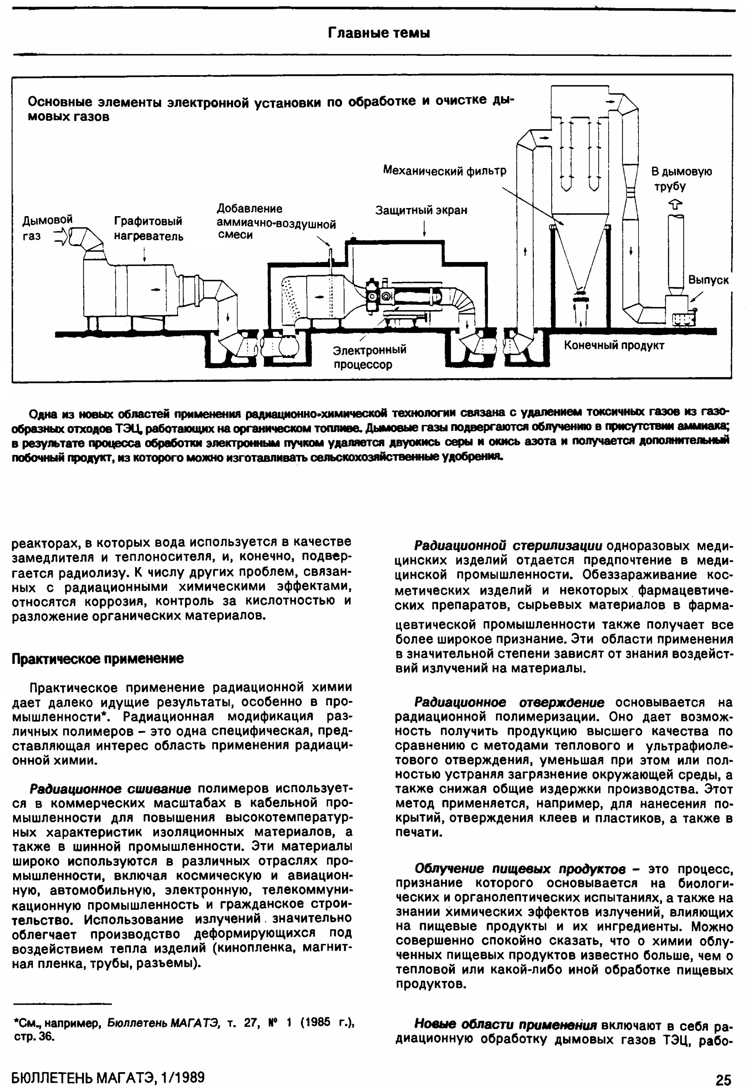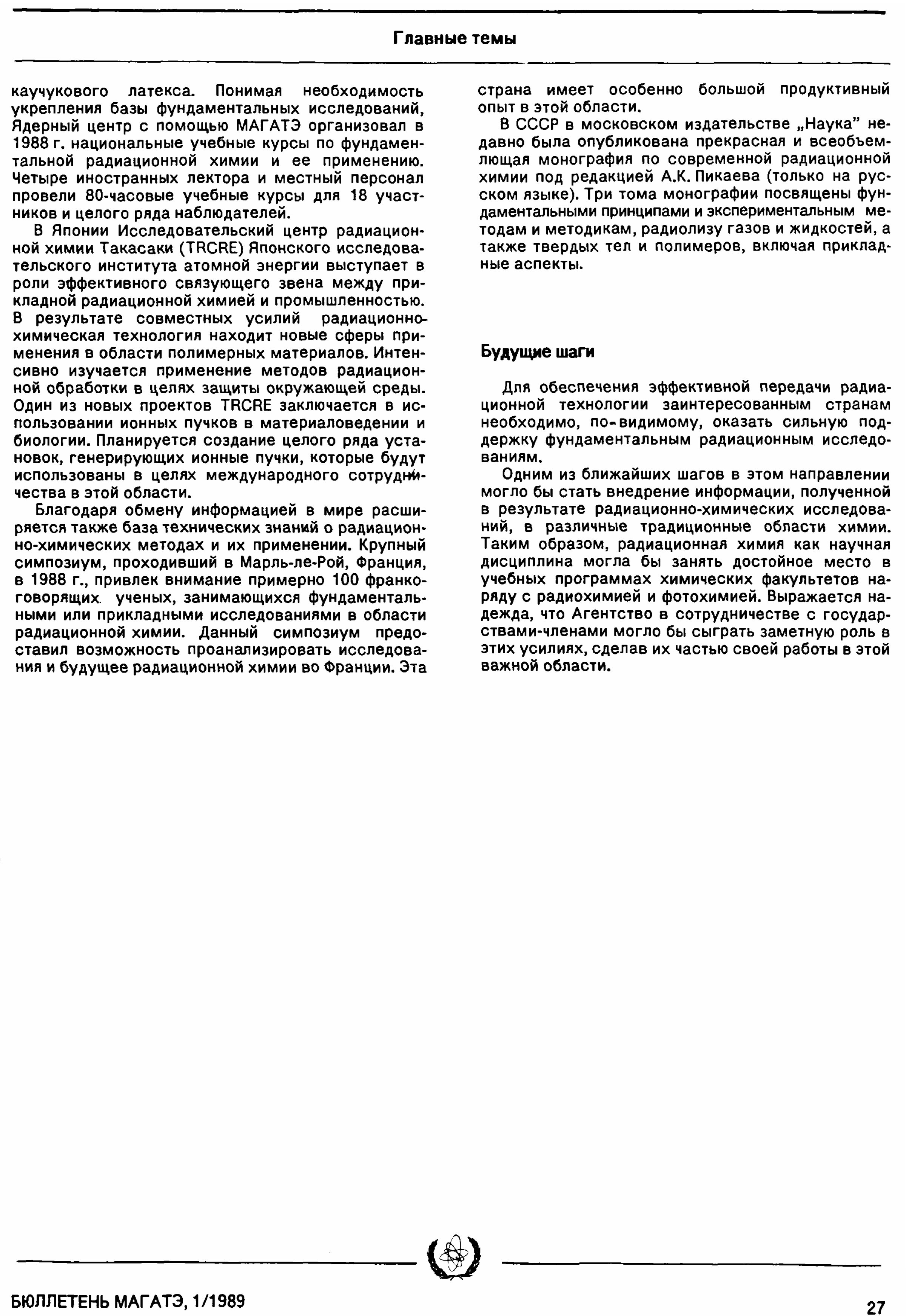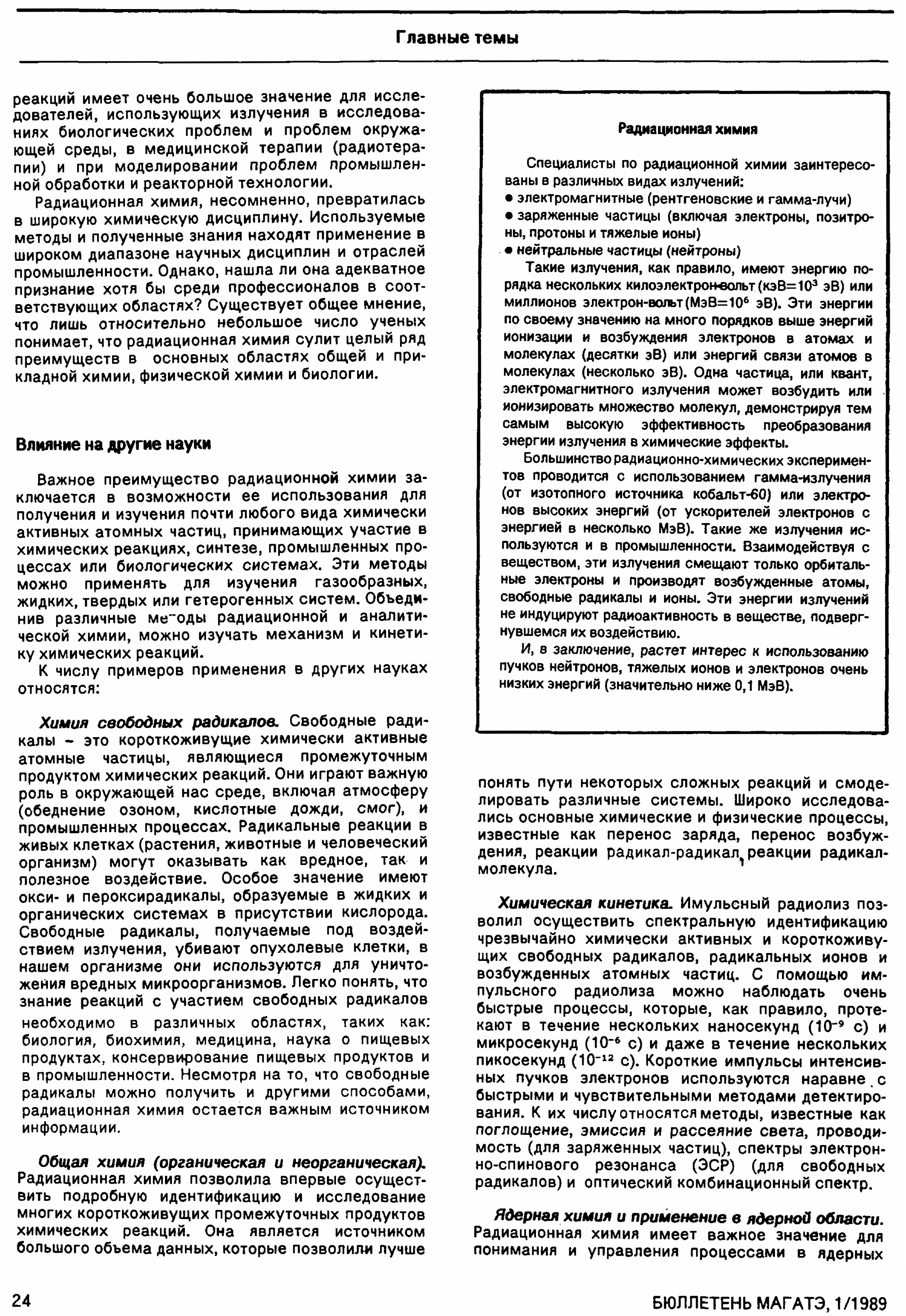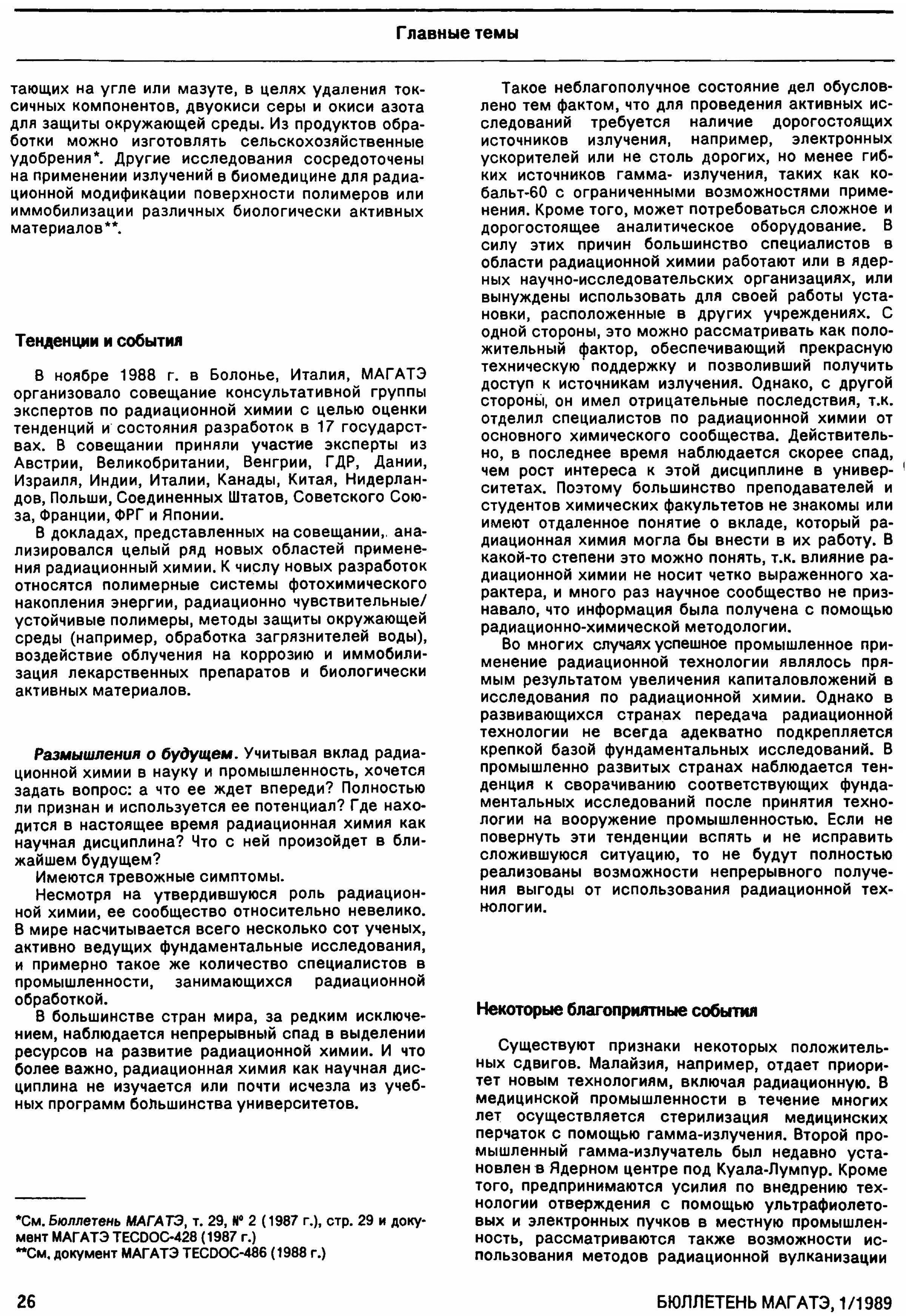 Маркович В. Радиационная химия: Малоизвестная область химической науки с многообещающими возможностями // Бюллетень МАГАТЭ. — 1989. — 1 — С. 23–27.